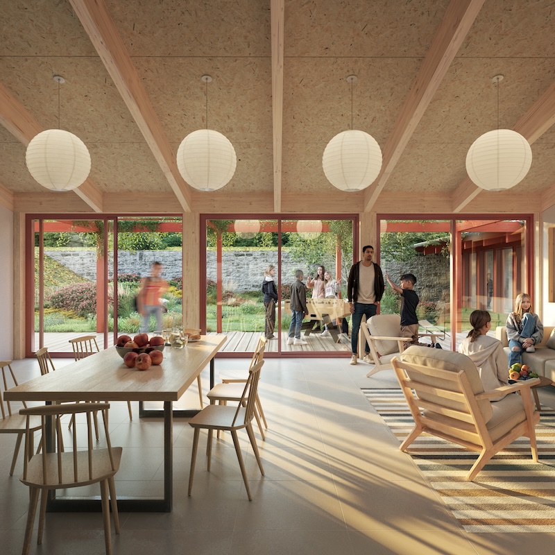 Parées de bois teinté, les extensions proposent une nouvelle image du foyer, que les enfants et éducateurs pourront s’approprier pleinement. Les volumes mesurés, les petits porches d’accueil et le calepinage soigné des façades, présentent un ensemble avenant auquel on peut aisément s’identifier.
